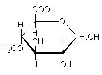 Углеводы льна образуют устойчивые коллоиды - слизи. Слизи образуются в растениях в процессе естественного развития и выполняют роль резерва углеводов, воды, а также защитного биоколлоида. В семенах они, по-видимому, играют роль резервуаров для удерживания воды, чтобы защитить семена от обезвоживания. В химическом отношении в слизях преобладают пентозаны (до 90%). Из физических свойств для слизей характерна их полная растворимость в воде. Слизистые вещества льняных семян представляют собой сложные химические соединения моносахаридов, показано, что они содержат цепи из чередующихся остатков D-галактуронововой кислоты и L-рамнозы, к которым присоединены боковые цепи, состоящие из остатков 3-О-метил-D-галактозы, D-галактозы, L-рамнозы и D-ксилозы, а также 4-О-метил-D- глюкуроновой кислоты: