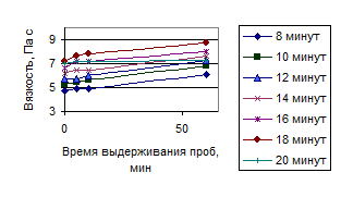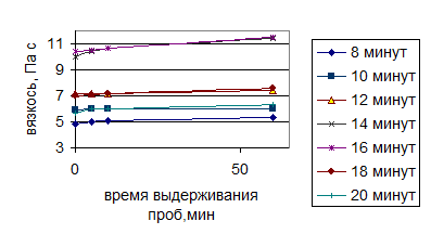 Зависимость вязкости от времени ультразвукового воздействия - Таблица 6