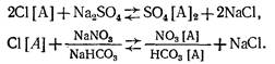 Хлор-ионирование осуществляется после предварительного натрий-катионирования. На натрий-катионитных фильтрах протекают реакции, рассмотренные выше и обрабатываемая вода умягчается, в ней остаются только соли натрия: NaHC03, Na2SО4, NaCl, NaNО3. При пропуске натрий-катионированной воды через сильноосновный анионит в хлор-форме протекают реакции обмена анионов, содержащихся в Na-катионированной воде, на ионы хлора, находящиеся в анионите, а, именно: