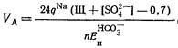 где qNa — производительность натрий-катионитовых фильтров, м3/ч; Щ — щелочность умягченной воды, мг-экв/л; [S042-] — содержание сульфат-ионов в исходной воде, мг/л; n=1 .3 — число регенераций фильтра в сутки; Eп=500 — полная обменная емкость анионита по ионам НСО3- и S042-, г-экв/м3.