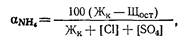 где [Nа] и, Жо — соответственно содержание натрия и общая жесткость исходной воды, мг-экв/л; αNH4 — степень обмена катионов Са (П) и Mg(II) на ион аммония, % (в схемах совместного аммоний—натрий-катионирования) или доля воды, поступающей на аммоний-катионитные фильтры, % (в схемах параллельного аммоний—натрий-катионирования), определяется из уравнения