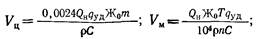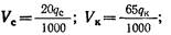 Объем баков для регенерационного раствора поваренной соли Vc, м3, и серной кислоты Ук, м3, если предусмотрено их разбавление до фильтров, рассчитывают по формулам