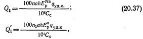где nиn — соответственно число Na и Н-катионитовых фильтров и регенераций каждого фильтра в сутки; а и h — площадь, м2, и высота, м, загрузки фильтра катионитом; Ер и ЕРн — рабочая обменная емкость соответственно Na и Н-катионита, г-экв/м3; qУД.с и qУД.к — соответственно удельные расходы соли и кислоты, г/г-экв, удаляемой жесткости; Сс = 5 . . . 8— средняя концентрация регенерационного раствора соли, %; Ск — средняя концентрация регенерационного раствора кислоты (в расчетах принимается равной 1%).