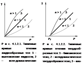 При n = 1 (рис. 4.1.2.2) – бингамовское тело; n > 1 – пластическое дилатантное тело; n < 1 – псевдопластическое твердообразное тело.