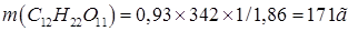 Зная, что молярная масса сахара 342г/моль, находим массу m (г) растворенного вещества, приходящуюся на 1000 г ( 1 кг ) воды из уравнения: