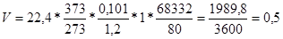 6.1. Рассчитываем объем паров проходящих в течении 1 –го часа верхней части колонны.