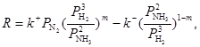 где m = 0,5 для железного катализатора, k+/k– = K – константа равновесия итогового уравнения.
