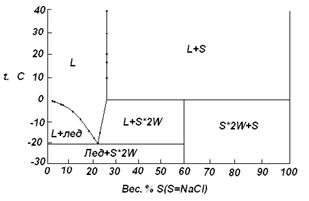 9. Используя приведенные ниже данные, постройте диаграмму для системы хлористый натрий (S) – вода (W). Примите, что твердые растворы не образуются. Обозначьте все области.
