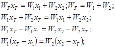 W1 – вес фазы 1, W2 – вес фазы 2, х1 –вес. % В в фазе 1, х2 – вес. % В в фазе 2; хТ – вес. % В во всей системе.
