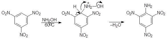 Хорошим нуклеофильным реагентом является гидроксиламин. При его использовании применять специальные меры для удаления гидроксид-аниона не требуется. Из тринитробензола в водноспиртовом растворе по этой реакции получается 2,4,6-тринитроанилин или пикрамид:
