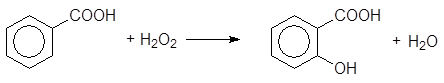 К реакциям нуклеофильного замещения атома водорода в ароматическом кольце относится синтез салициловой кислоты из бензойной под действием пероксида водорода.