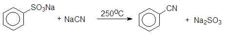 Из реакций нуклеофильного замещения электроноакцепторных групп в аренах, не содержащих активирующих групп, наибольшее значение имеют реакции замещения сульфогруппы. Сплавлением щелочных солей сульфокислот с твердыми щелочами и цианидами натрия и калия получают, соответственно, фенолы и арилцианиды.