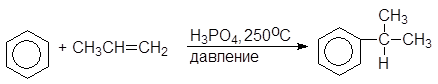 Большую часть фенола в настоящее время производят из изопропилбензола – кумола. Окислением кумола воздухом получают гидроперекись кумола, разлагающуюся под действием водных растворов минеральных кислот на фенол и ацетон. Кумол синтезируют из бензола и пропилена.