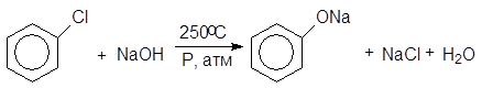 Хлор в хлорбензоле малоподвижен и поэтому гидролиз ведут 8%-ным раствором NaOH в автоклаве при 250оС в присутствии солей меди: