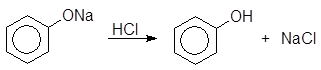 Фенолы являются более сильными кислотами, чем вода, в то время как спирты более слабыми, чем вода. В отличие от спиртов фенолы со щелочью дают соли – феноксиды (феноляты), не разрушающиеся водой, но разлагающиеся более сильной угольной кислотой.