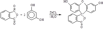 При сплавлении фталевого ангидрида с резорцином в присутствии хлорида цинка происходит аналогичная реакция и образуется флуоресцеин: