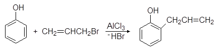 Фенолы вступают в реакции алкилирования по Фриделю-Крафтсу. Например, при взаимодействии фенола с аллилбромидом в присутствии хлорида алюминия образуется 2-аллилфенол: