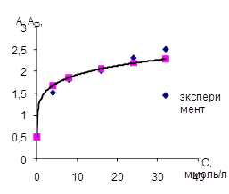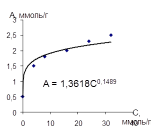 Сопоставив диаграмму, построенную по экспериментальным точкам с графиком, построенным по уравнению Фрейндлиха, можно сказать, что данное уравнении адсорбции фенола на активном угле КАД применимо для концентраций С = 8 ÷ 24 ммоль/л.