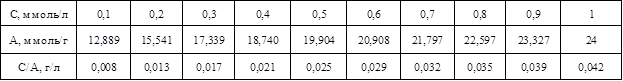 – предельная адсорбция, ммоль/г