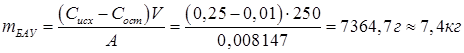 2. Найдем массу необходимого адсорбента: