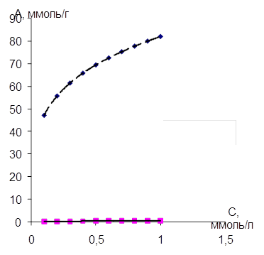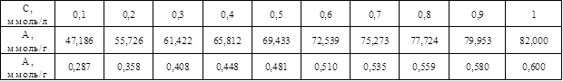 Чтобы представить это наглядно, возьмем область равновесных концентраций в пределах 0,1 – 1,0 ммоль/л и построим изотермы адсорбции: