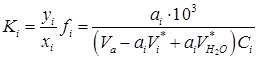 Это – уравнение парциальной изотермы адсорбции, поскольку оно связывает равновесные величины адсорбции данного компонента с его равновесной концентрацией. Необходимые для расчетов величины молярных объемов компонентов раствора могут быть вычислены из их плотности в жидком состоянии: