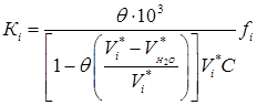 В уравнение парциальной изотермы адсорбции удобно вести величину относительного заполнения объема адсорбционной фазы органическим компонентом