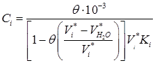 Значения концентраций насыщенных растворов, для которых fi = 1 при разных значениях