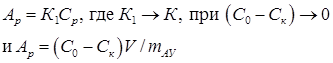 В случае линейности изотермы адсорбции или аппроксимации ее прямой, проходящей через начало координат, возможно применение экспресс-методики сравнительной оценки адсорбционной емкости углей по единственной экспериментальной точке. При этом экспериментально найденная адсорбционная емкость