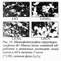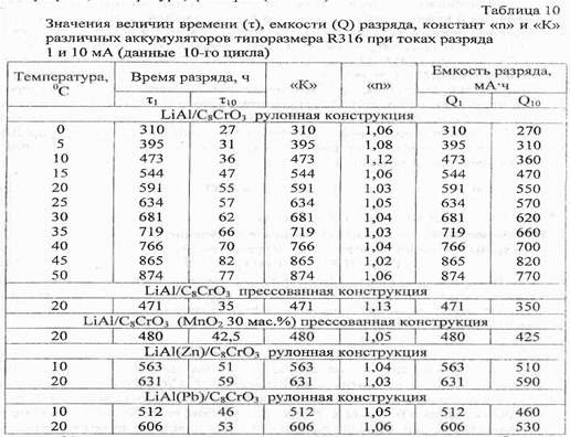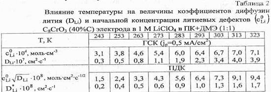 1. Комплексное исследование процессов интеркаляции – деинтеркаляции ионов лития в активируемый С8СЮ3 электрод позволило установить влияние изменений поверхностных и объемных свойств электрода, происшедших в результате физико-химических воздействий на кинетику и механизм реакции. Модифицирование С8Сг03 электрода путем химического, физического или электрохимического воздействия улучшает условия для прохождения электрического тока, подвода электронов и катионов лития в зону реакции и таким образом способствует увеличению скорости внедрения и степени, катионов лития в соединении Li,C8Cr03, повышению разрядных характеристик и эффективности при циклировании.