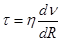 где t - напряжение внутреннего трения; dv/dR - градиент скорости по радиусу трубы или относительное изменение скорости по направлению, перпендикулярному к направлению течения, т.е. приращением скорости на единицу длины нормали; h — коэффициент (касательное усилие на единицу площади, приложенное к слоям жидкости, отстоящим друг от друга на расстоянии, равном единице длины, при единичной разности скоростей между ними).
