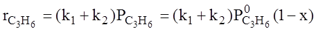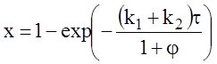 Если активность катализатора ниже стандартной в 2 раза, например, вместо k=k1+k2=1сек-1 получили образец с k=0,5сек-1, то для t=1сек, b=0,2сек-1 (т.е. при j=5) конверсия уменьшается с 0,965 до 0,943.