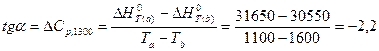 следует, что тангенс угла наклона касательной, проведенной к кривой при температуре 1300К дает величину ∆СР (см. рис. 1). Чтобы определить численное значение ∆СР возьмем на касательной две произвольные точки «а» и «b». Можно записать: