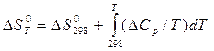 Рассчитаем изменение энтропии в заданном интервале температур и полученные данные сведем в табл. 3.