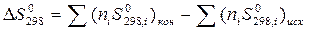 В этом уравнении ∆S0298 – стандартное изменение энтропии для реакции при 298 К, определяемое по мольным энтропиям веществ ∆S0i,298: