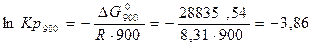 Константа равновесия, соответствующая полученному значению lnKp900 вычисляется следующим образом: