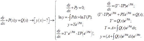 2.1) Прежде, чем решить ввести один из основных приёмов формальной кинетики, целесообразно напомнить необходимые сведения о решении линейного неоднородного дифференциального уравнения первого порядка.