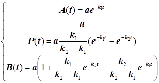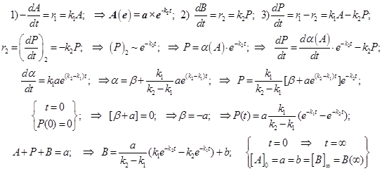 2.2) Далее обратимся к нашей конкретной химической задаче. Рассмотрим двухстадийный механизм последовательного превращения, в котором обе элементарные стадии являются реакциями 1-го порядка: