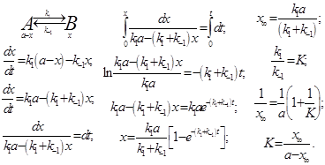 Положим [A]0=[B]¥=a (рис.8). Упростим обозначения концентраций: