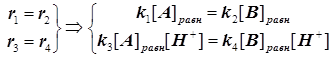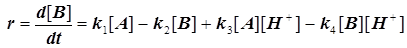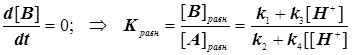 В результате концентрация протонов исчезает из выражения константы скорости, а именно:
