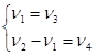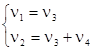 При таком разделении системы уравнений следует проверить, чтобы определитель левой части D ≠ 0, иначе система не будет иметь решения. Для удобства нахождения значений ν1 и ν2 (при заданных ν3 и ν4), систему (11) приводят к единичному базису (метод Жордано-Гаусса) так, чтобы каждое уравнение слева имело одно неизвестное. Так, сложив уравнения в системе (11), получим ν2 = ν3 + ν4 и система (11) примет вид (12)