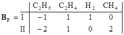 Ранг матрицы BP, т.е. базис QP итоговых уравнений, для маршрутов I и II равен 1 (QP = rankBP = 1). Во втором случае (I и II*) число ненулевых итоговых уравнений равно QP. Такой базис маршрутов называется “стехиометрическим базисом” маршрутов (число пустых маршрутов равно P – QP).