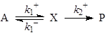 При выводе кинетических уравнений часто используют различные допущения о соотношениях скоростей стадий, поскольку скорости элементарных стадий могут сильно различаться по величине. Например, скорости стадий адсорбции и химических превращений на поверхности катализатора. Важное допущение – о наличии медленных и быстрых стадий. Быстрые обратимые стадии являются квазиравновесными (РЕ – preequilibrium), а допущение о наличии таких стадий – приближением квазиравновесия. В закрытых системах особенно для каталитических реакций используют допущение о квазистационарности концентраций интермедиатов (SS – steady - state, допущение Боденштейна). Критерии применимости этих допущений рассмотрены в учебном пособии О.Н. Тёмкина, К.Ю. Одинцова и Л.Г. Брука “Приближения квазистационарности и квазиравновесия в химической кинетике”, М., МИТХТ, 2001г. Здесь приведем условия реализации различных приближений для простой схемы: