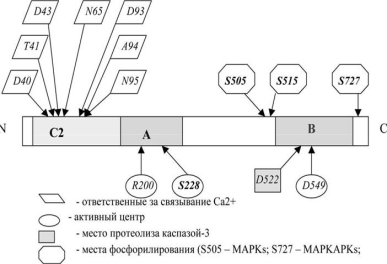Связывание фосфолипазы с мембраной происходит за счёт имеющегося в белке домена С2: