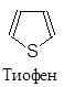 Тиофен содержится в каменноугольной смоле и является спутником коксохимического бензола (присутствует в количестве 0,5%). По ряду физических и химических свойств тиофен очень близок к бензолу: температура кипения тиофена 84оС, бензола 80оС; запах чистого тиофена напоминает запах бензола, очень близка их склонность к реакциям нуклеофильного замещения. Тиофен - наиболе аромаатический из пятичленных гетероциклов.