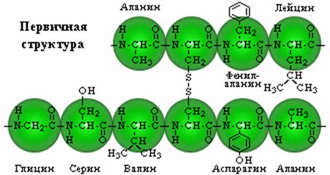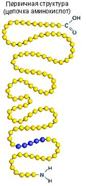 Представляет собой линейную цепь аминокислот (полипептид), расположенных в определенной последовательности с четким генетически обусловленным порядком чередования и соединенных между собой пептидными связями.