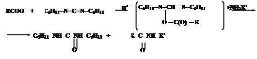 Промежуточным соединением является O-ацил-N,N’-дициклогексилмочевину (ДЦМ):