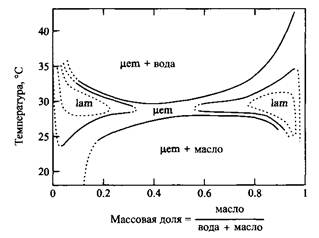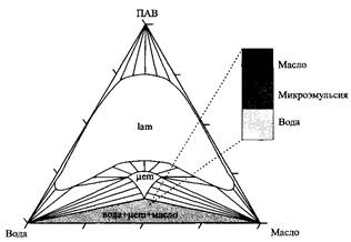 Фазовая диаграмма системы, состоящей из ПАВ, воды и масла, в сбалансированных условиях; цет – микроэмульсия, Iam-ламелярная фаза