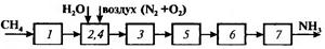 6) Синтез аммиака (после всех стадий получена чистая азото – водородная смесь; примесь СН4, полученная в предыдущей стадии, мала):
