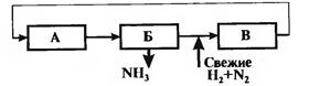 Функциональная схема синтеза аммиака: А – синтез NH3; Б – выделение NH3; В – компрессия и рециркуляция